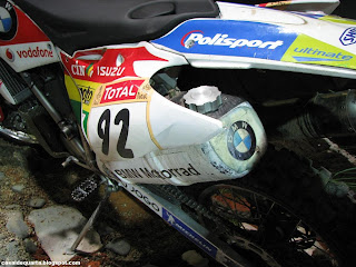Muitas motos e acessórios vi por lá mas houve 2 máquinas que ocuparam mais espaço no cartão de memória da minha maquina fotográfica, a BMW G450X com que Bianchi Prata terminou o Argentina-Chile deste ano e a outra vou deixar umas fotos mais para o meio da semana…